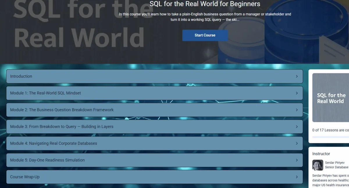 The SQL Playbook is a focused, weekend-sized course that shows you how to think like a senior analyst – without burying you in more theory or rare-edge-case features.